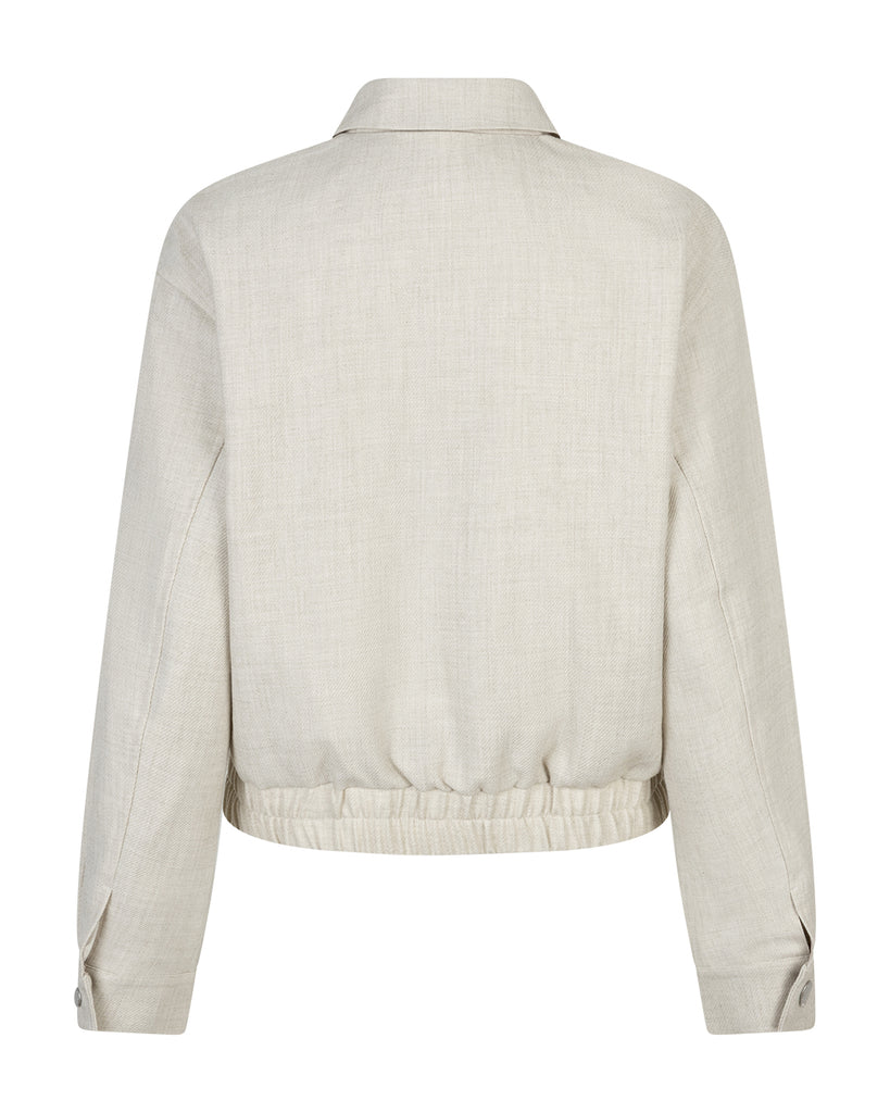 Linen feel lined bomber jacket with a collar, pockets and elasticated waist. Zip Closure.