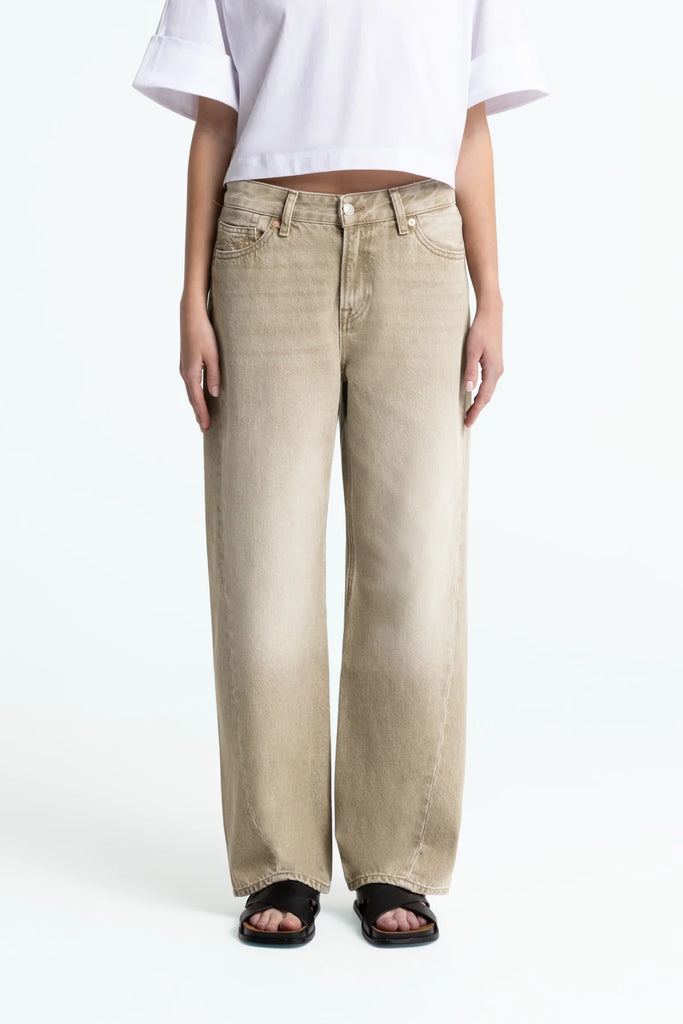 The JOAN jeans feature a low-rise waist and a loose, straight leg with a subtle flare at the ankle, giving them an easy, vintage-inspired feel. Made from rigid denim, they offer plenty of room through the leg for comfort while still feeling considered and stylish. Loved by our customers for their relaxed fit and effortless look.