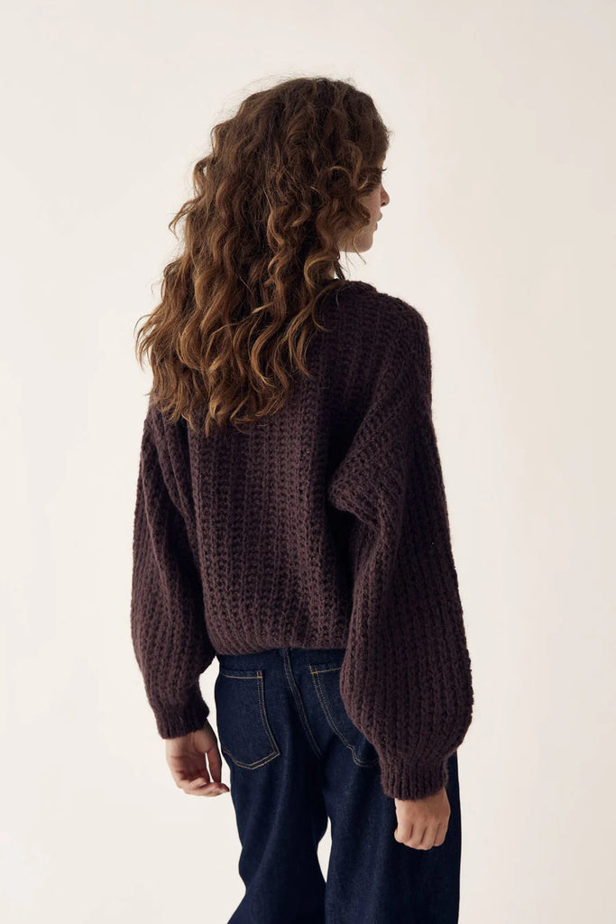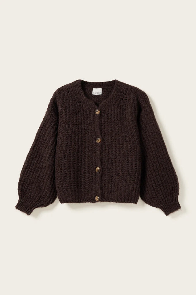 Lyvia Knit is a cardigan with a loose fit in basket weave knit, ribbed edges, and large buttons.