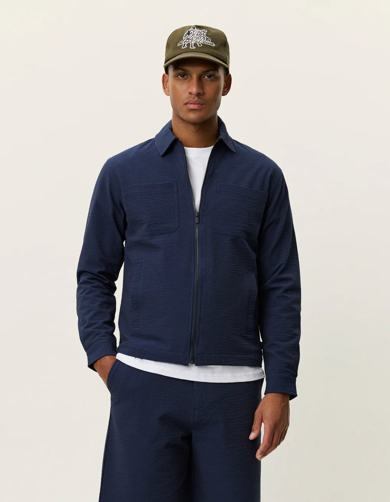 Les Deux Marseille Seersucker Zipper Jacket - Dark Navy