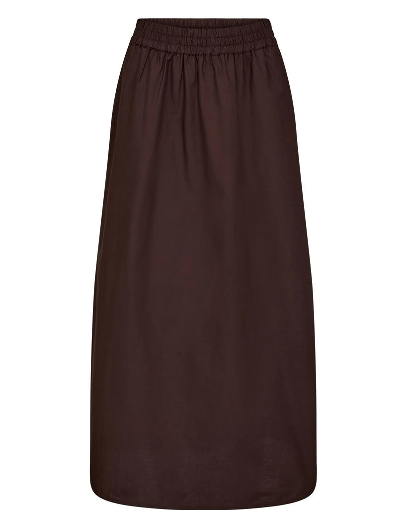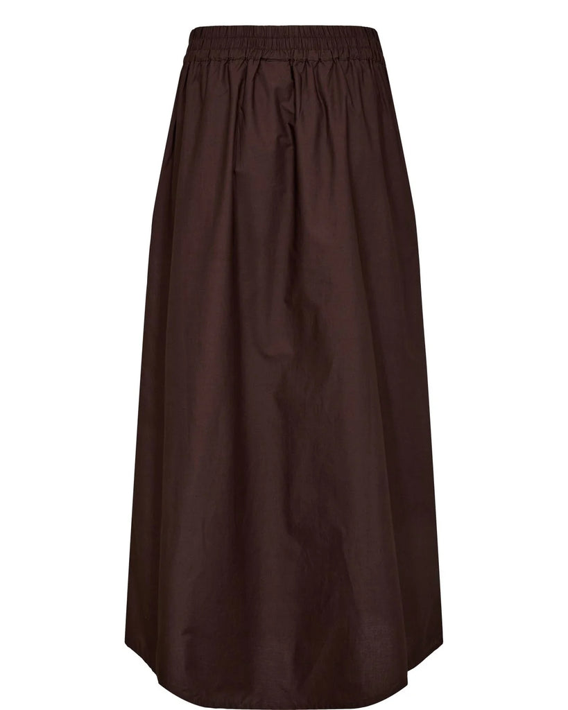 A really cool cotton full skirt with an elasticated waist and side pockets. Long enough to wear with trainers or boots. Team with some Maruti Yale trainers like the cow print option and the Numph Nubia long sleeve tee. Fun with chunky socks and Blundstones too.