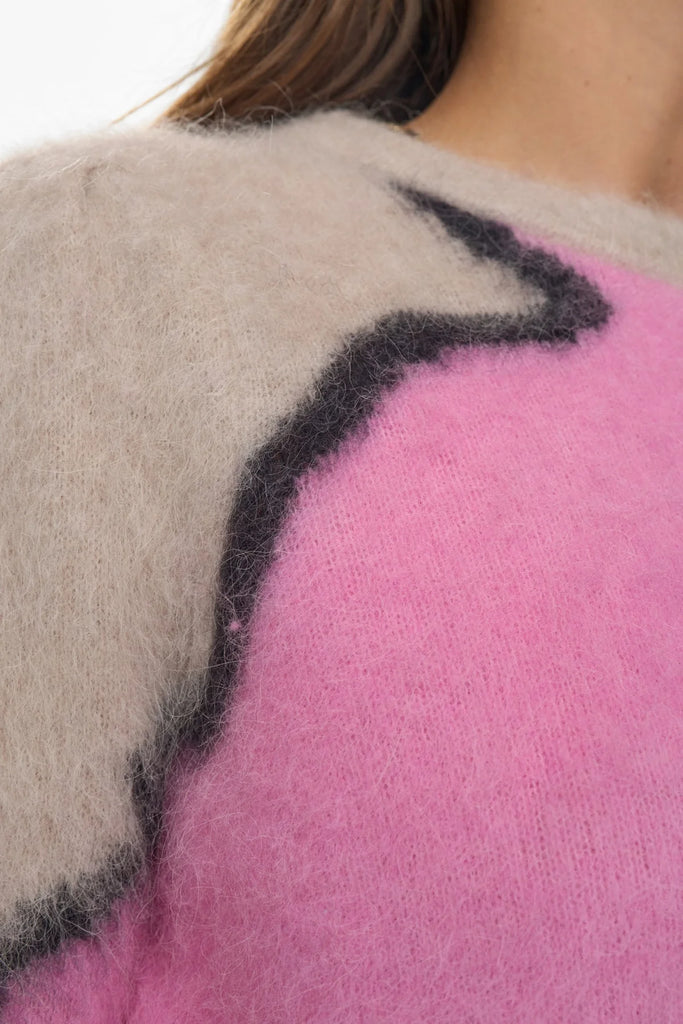 Colourful, fluffy knit from Numph with a contrast colour on the shoulder.