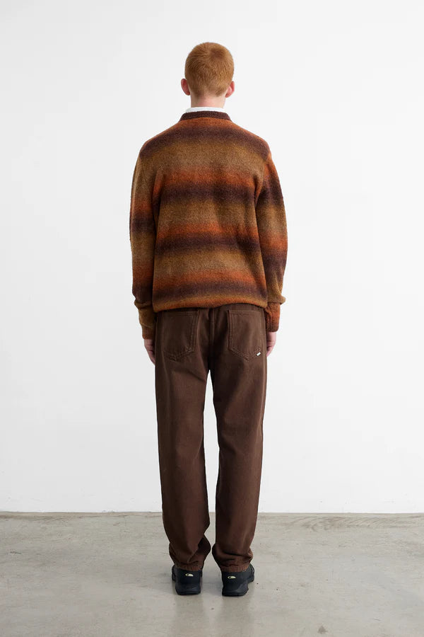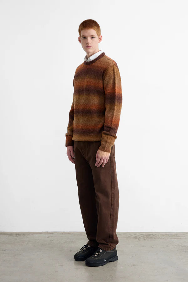 Crew-neck sweater with a bouclé effect, made with printed yarns that create a gradient of tan tones. Relaxed fit, perfect for all-day comfort.