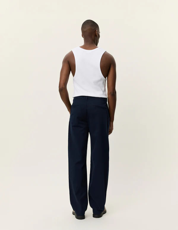 Easy wearing chinos crafted in a slightly brushed cotton twill. The Romeo comes with front pleats, a straight loose fit, and a classic button and zipper fly for an everyday tailored look.