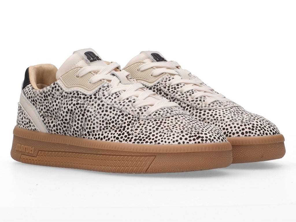 The YALE sneakers in the Pixel design are a bold and stylish choice. The striking animal print detail on the sides adds a playful touch, while the combination of white leather and beige suede accents gives the sneakers a refined look. The sturdy brown sole provides extra comfort and makes these sneakers perfect for both casual and sporty looks. Whether you're upgrading your everyday outfit or going for a trendy appearance, the YALE Pixel sneakers are the ideal choice for any occasion.
